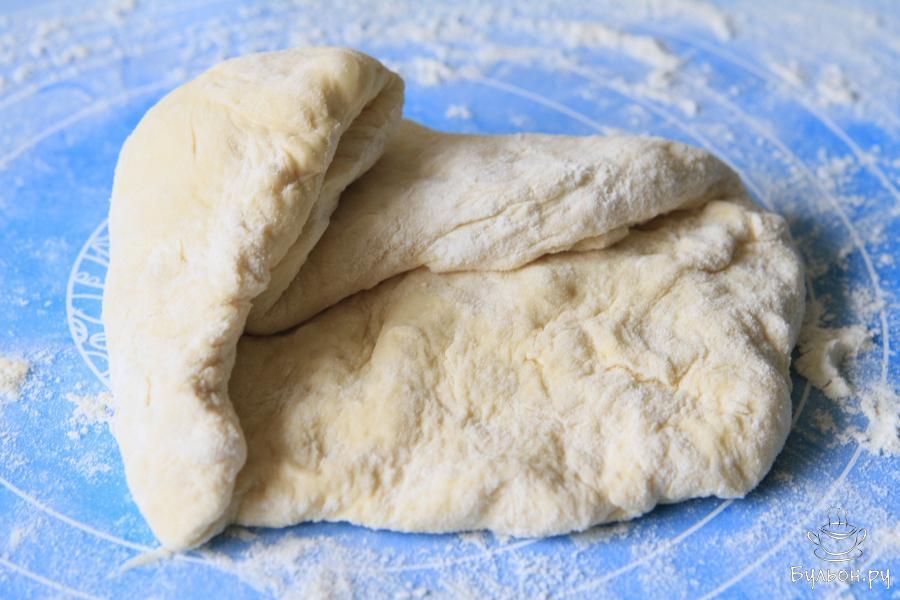 15. Каждый кусочек теста слегка прижать руками, работаем быстро и аккуратно, не прилагая усилий. Формируем лепешку.