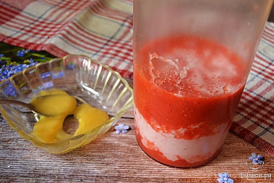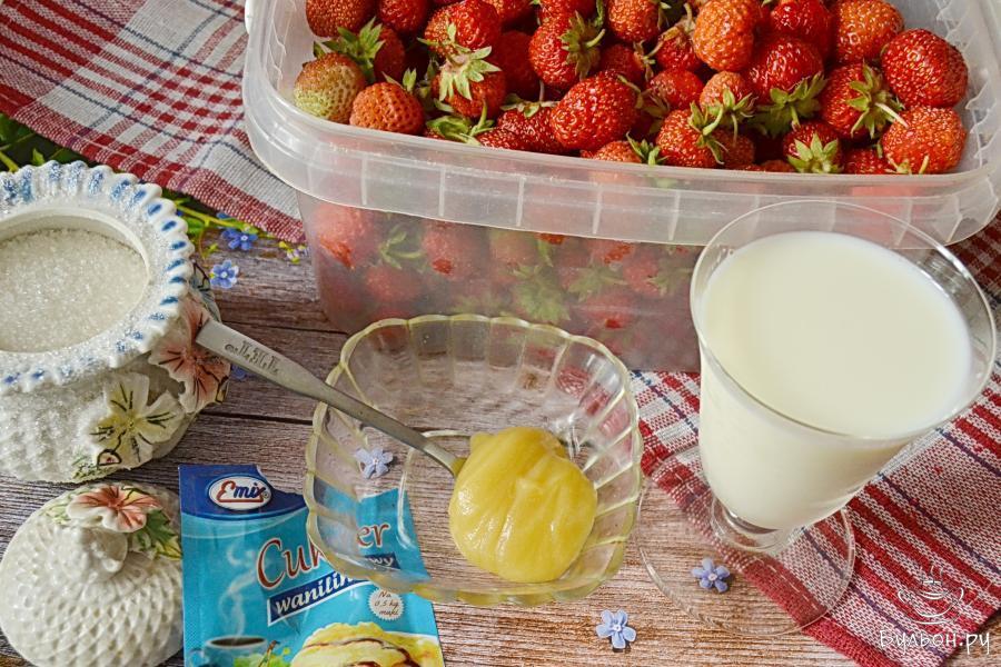 1. Подготовим необходимые продукты. В зависимости от того, насколько сладкая клубника, можно откорректировать количество сахара и меда. Молоко можно взять жирное или обезжиренное, в зависимости от того, хотите ли вы получить более или менее калорийный напиток.