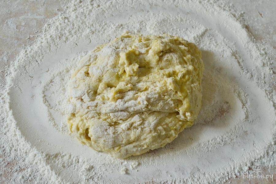 6. В конце замеса у нас должен получиться примерно такой комочек. Тесто можно делать более или менее плотным, увеличивая или уменьшая количество муки.