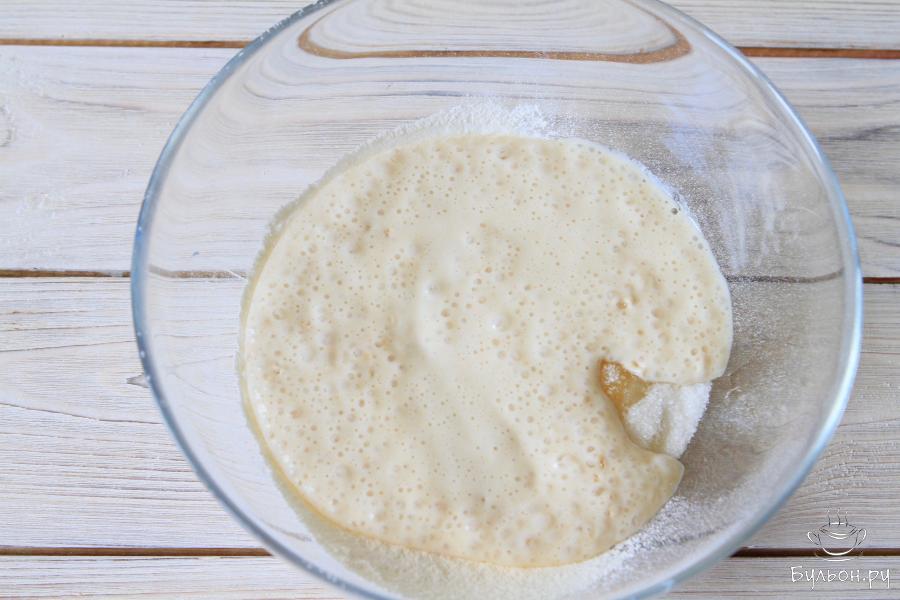 2. Все ингредиенты хорошо перемешать между собой. Консистенция у опары должна быть однородной, без комочков.