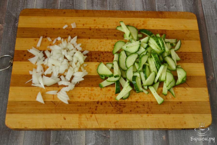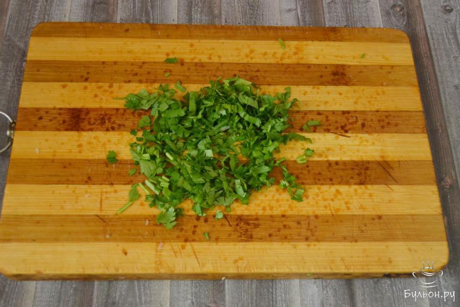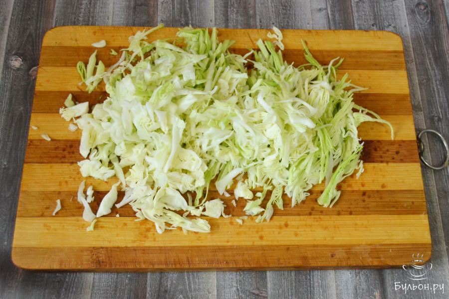 1. Этот салат хорош еще и тем, что можно не придерживаться точных пропорций компонентов. Можно отдать предпочтение тому или иному ингредиенту. Капусту тонко нашинкуем.