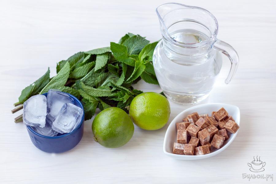 1. Для приготовления 1 порции напитка вам понадобится: 1-2 веточки мяты, 2-3 кубика льда, 1 лайм, 200 миллилитров содовой или газированной воды, а также тростниковый сахар по вкусу.