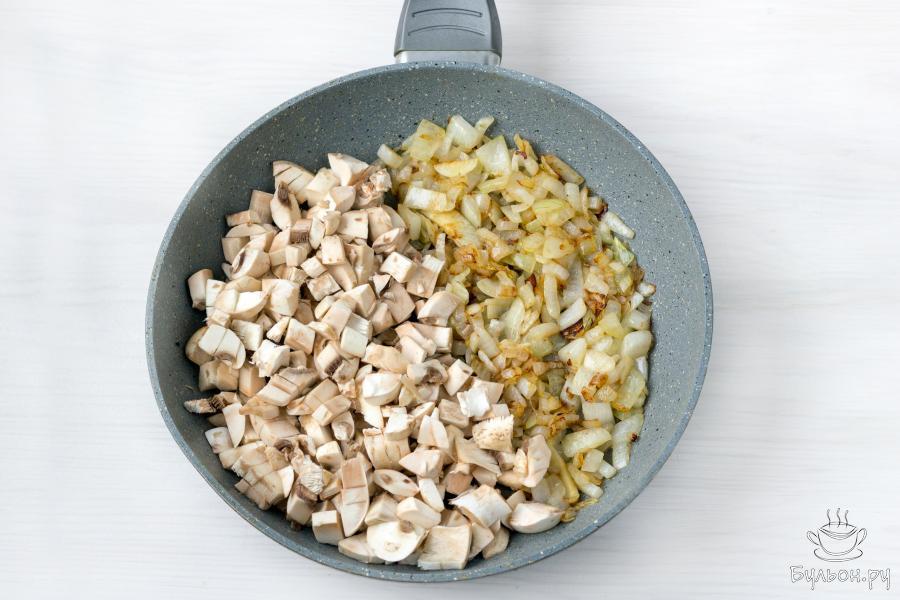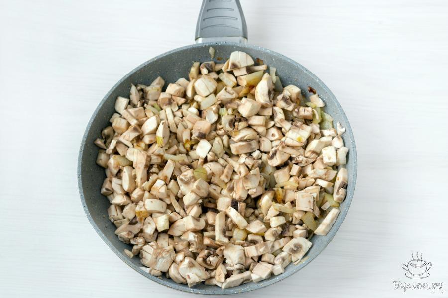 4. Увеличьте огонь и помешивая обжарьте смесь еще 5-7 минут, пока жидкость, которую дадут грибы практически не выпарится.