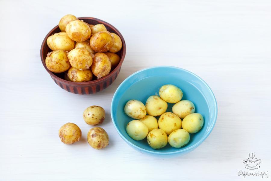 2. Очистите картофель. Для чистки молодого картофеля отдайте предпочтение мягким скребкам или губкам, которые позволят деликатно очистить лишь тонкий слой кожуры молодого картофеля, не повредив целостность клубня.