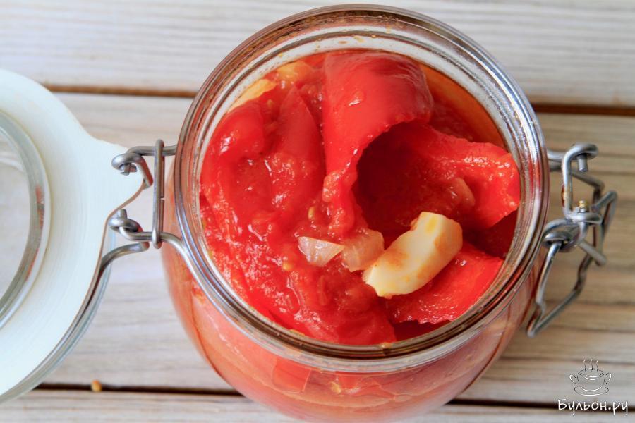 8. Заранее подготовить банки. Простерилизовать их удобным для вас способом. В банку выложить сначала дольки перца, заполнив ее максимально плотно.