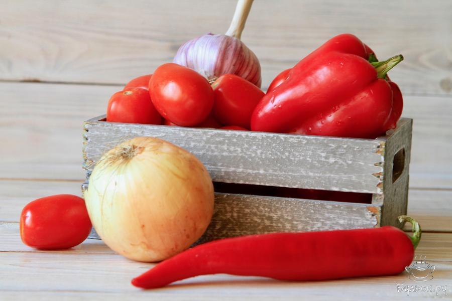 1. Набор продуктов для лечо небольшой, основными ингредиентами являются томаты, болгарский перец (предпочтение отдать красному), перец чили и чеснок.