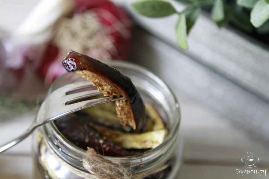 10. Убрать в холодильник на пару часов. Хранить вяленые баклажаны лучше всего в холодильнике и под крышкой.