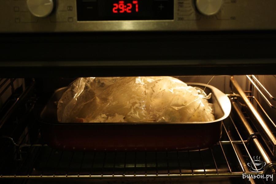5. Переложить смесь в рукав для запекания, сделать небольшой надрез, чтобы пар выходил. Запекать в разогретой до 200 градусов духовке 30 минут. По истечении времени переложить в глубокую миску, перемешать.