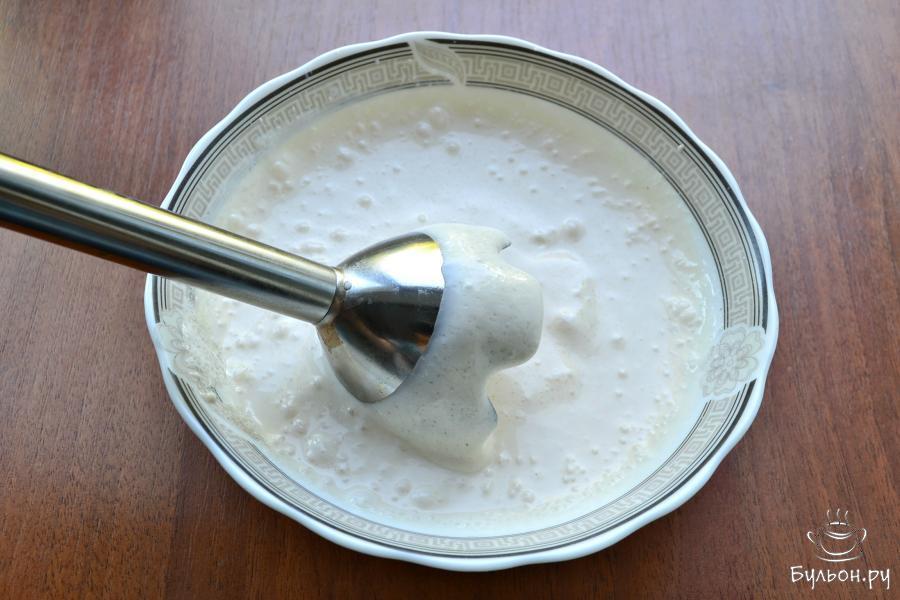 5. Погружным блендером взбить смесь до состояния однородности. Крем будет не густым, поместить его в холодильник.