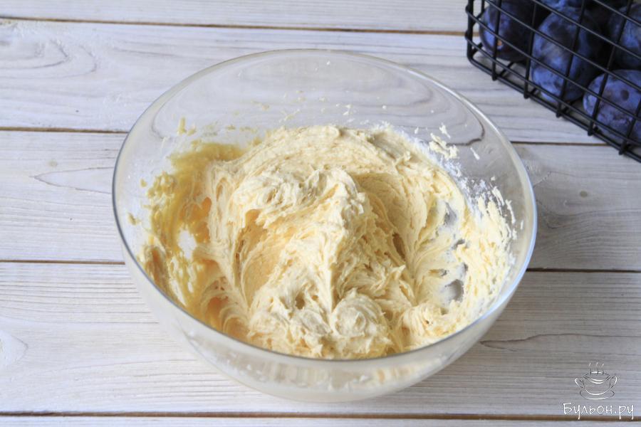 1. За 30 минут до приготовления необходимо достать все продукты из холодильника. Сливочное масло комнатной температуры взбить с сахаром.
