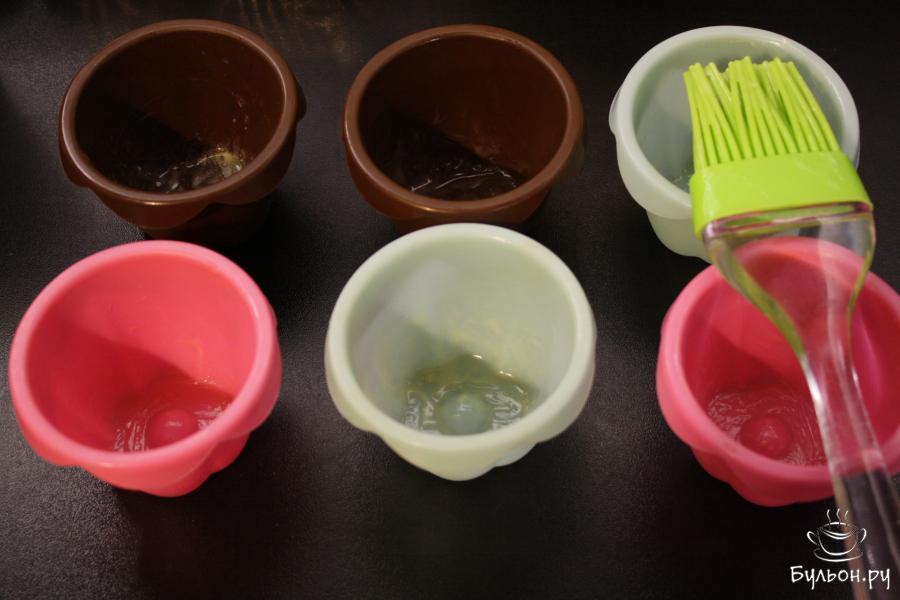 8. Разложить смесь по формочкам не доходя до краев. В процессе выпекания запеканки будут сильно подниматься, им нужно будет место