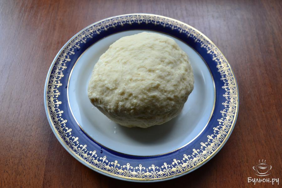 13. Тесто разделить на 4 части, скатать в жгуты, смазать оставшимся растительным маслом и сложить на тарелку в виде спирали. Прикрыть тесто пленкой и оставить на 15 мин.