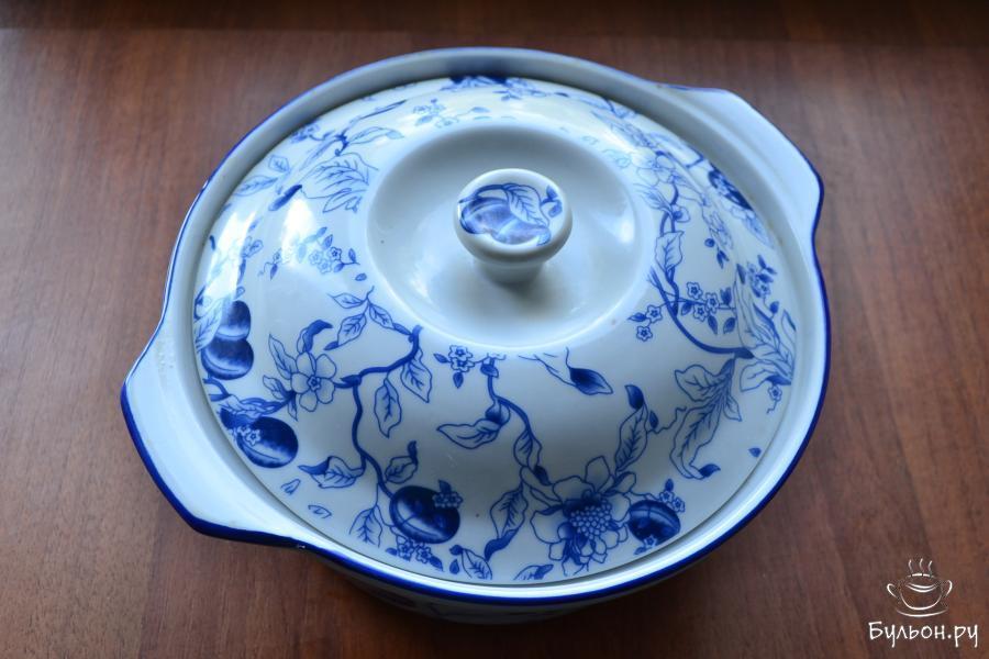 8. Готовить кролика в духовке с температурой 200 гр, 40 минут, после чего крышку убрать и продолжать готовку еще 30 минут при той же температуре.