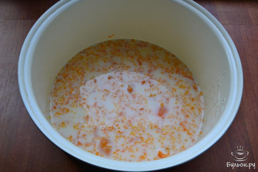 4. Коровье молоко, желательно домашнее, смешать с оставшейся водой, влить смесь в чашу, все перемешать.