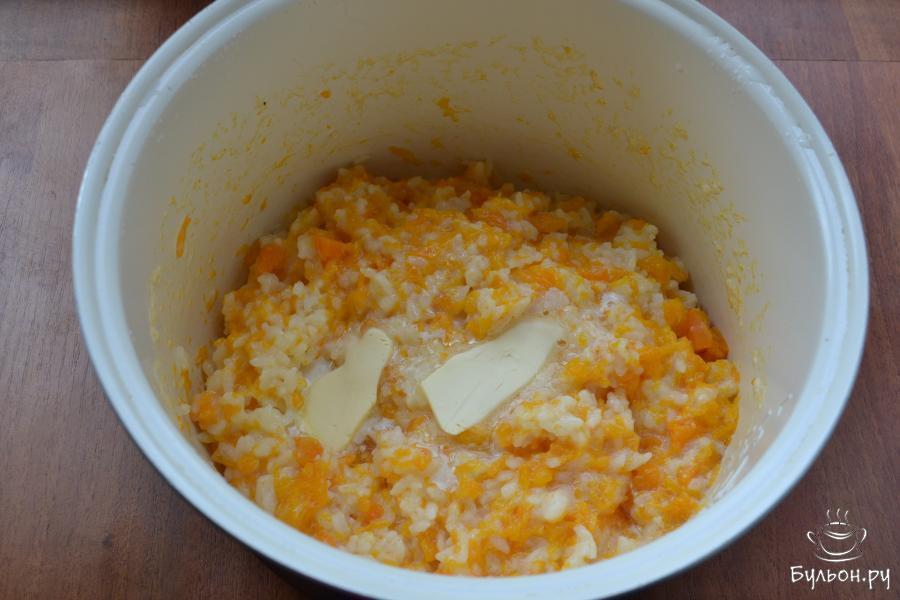 5. Готовить кашу на функции "каша" или "каша молочная" 55 мин, после чего оставить на функции "подогрев" еще на 15 мин. Затем добавить в ароматную кашу хорошее сливочное масло, аккуратно перемешать ее.