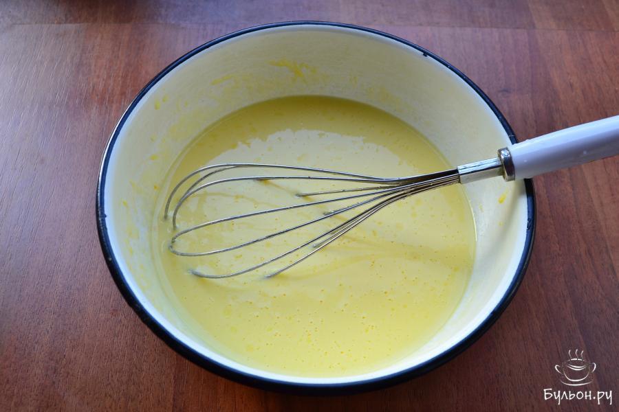 5. Когда молоко закипит, постепенно влить яично-кефирную смесь, постоянно все помешивая. Молоко должно свернуться и творог отделится. Газ выключить. Кстати, если вы хотите, чтобы сыр был твердым, отделившийся творог и сыворотку нужно поварить на небольшом огне около 5 минут.