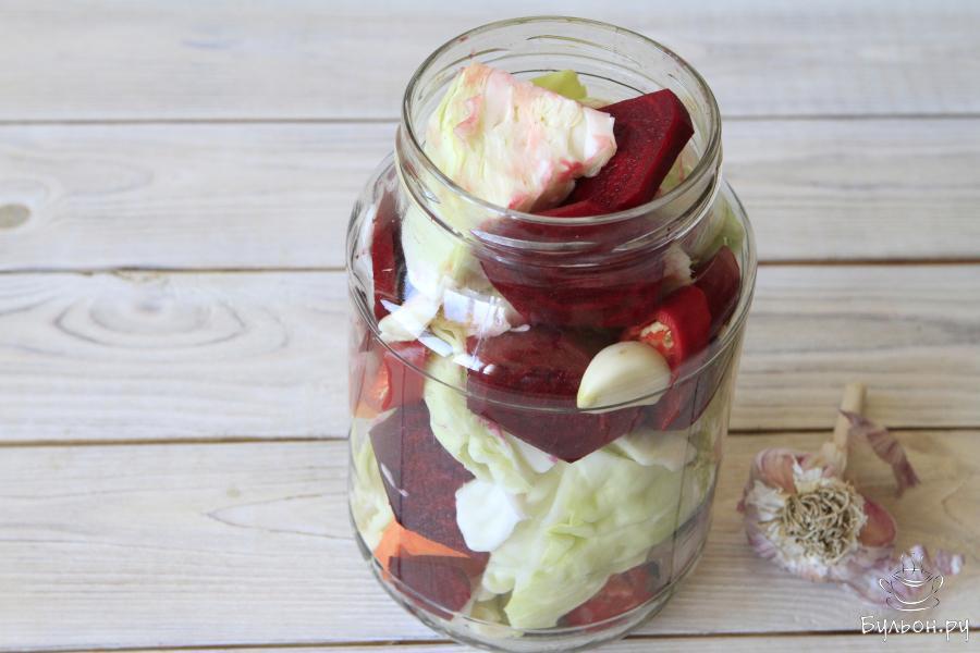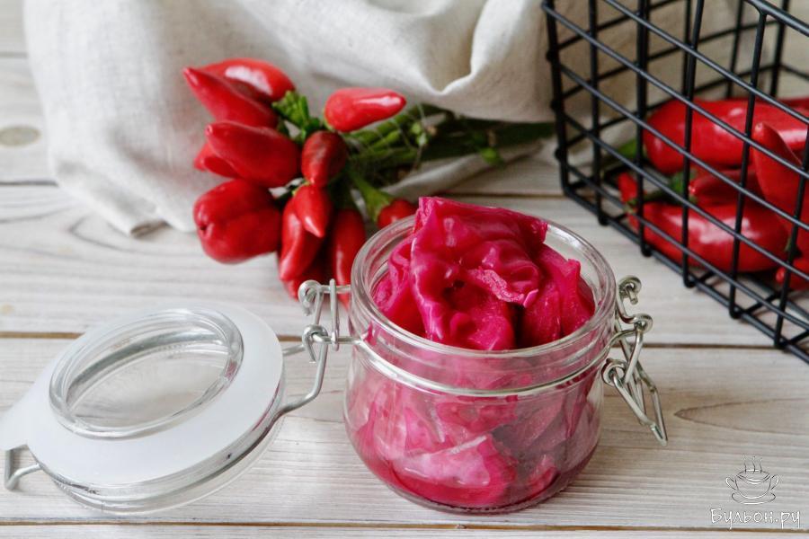 В качестве зимних заготовок острая капуста по-кавказски не уступает место всеми любимой квашеной капусте. Капуста получается острой за счет добавления перца чили, но при желании остроту можно уменьшить. Острая капуста по-кавказски отлично подойдет в качестве закуски под горячительные напитки и идет на ура в зимнее время года. Капусту рекомендуют нарезать крупно, а вот морковь и свеклу на свое усмотрение (можно кружочками, а можно брусочками). Готова капуста будет через 3-5 дней.