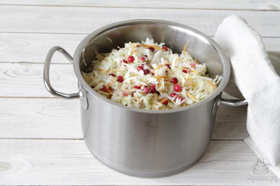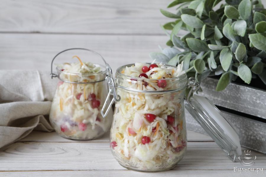 Квашеная капуста - классика русской кухни. Для ее приготовления обычно используют поздние сорта капусты. Квасят капусту перетирая ее с морковью и специями, добавляют яблоки, груши, клюкву. Срок хранения такой капусты долгий. Хозяйки своих домов хранят ее в подвалах и погребах в деревянных бочках. В городских условиях хранить капусту лучше всего в холодильнике и под крышкой. Квашеную капусту с клюквой можно подать самостоятельно, заправив маслом. Капусту добавляют в салаты, супы, в начинки для пирогов.