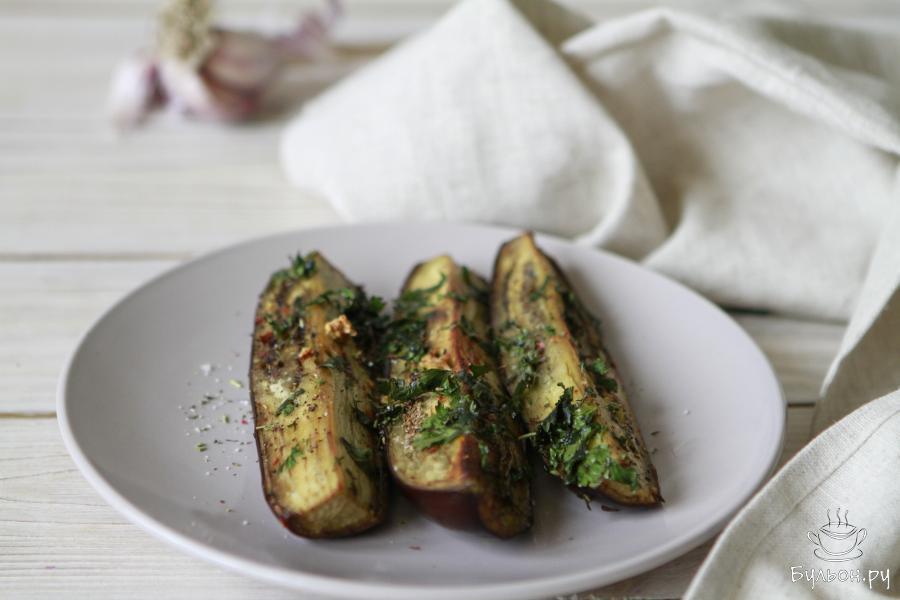 Легкая закуска из баклажанов вполне актуальна в сезон этого овоща. Подают ее обычно в теплом виде, самостоятельно или в качестве гарнира для мясных и рыбных блюд. Перед приготовлением желательно замочить баклажаны на 10-15 минут, это позволит избавиться от горечи. Баклажаны выбирайте упругие и желательно не старые, а молодые, у них семян меньше и они не мясистые. Баклажаны можно порезать брусочками или кружочками. А вот для пряности блюда выбирайте любимые травки.