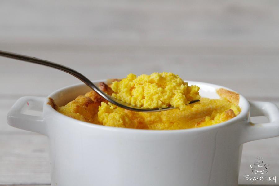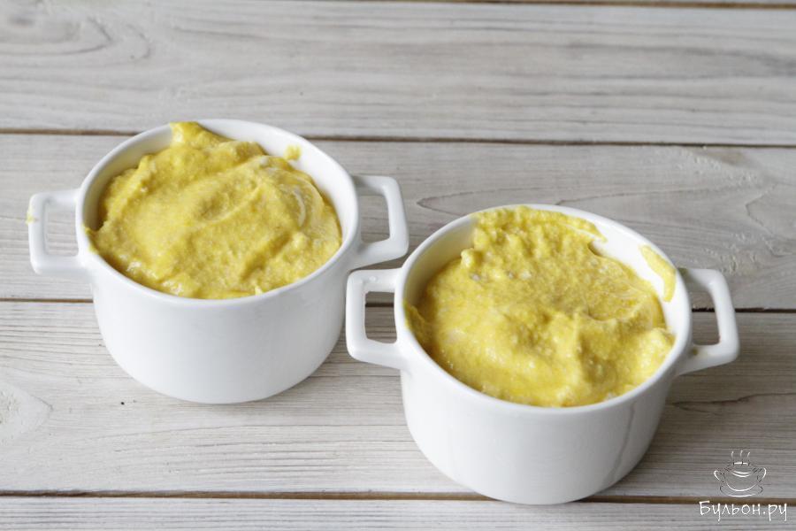 7. Подготовить формы и выложить в них суфле. Формы отправить в духовку, запекать при 180 гр 25 минут.