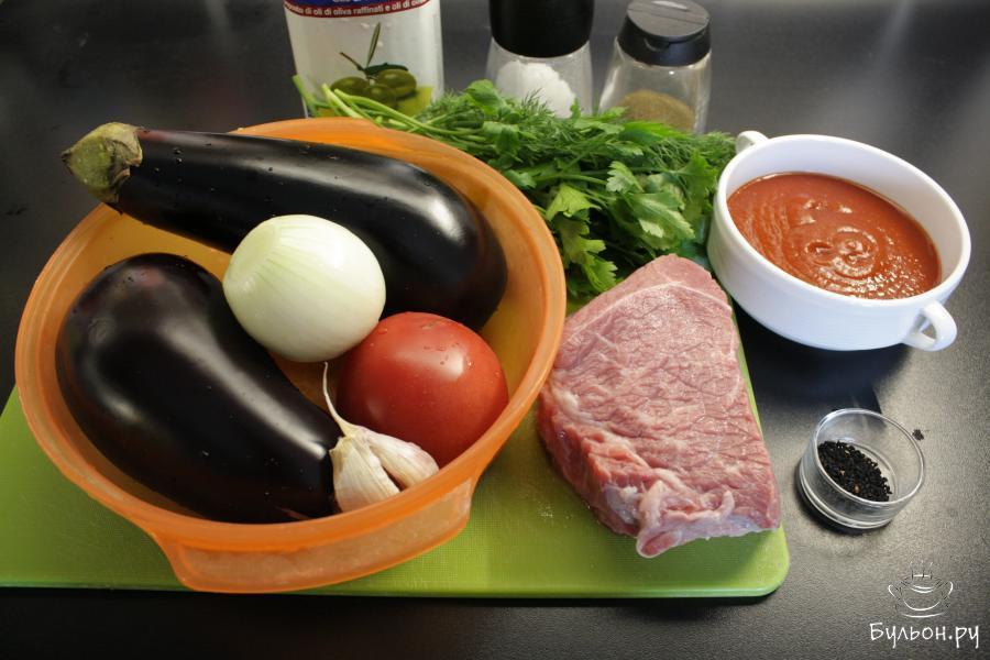Быстрый рецепт вкусного диетического блюда с насыщенным вкусом и ароматом. Баклажаны лучше брать небольшие и плотные. Говядину можно использовать постную, в любом случае, она во время готовки промаринуется томатами, и мясо получится мягким и сочным. Можно исключить мясо, тогда блюдо можно будет подать как холодную закуску, либо как основное блюдо для вегетарианцев