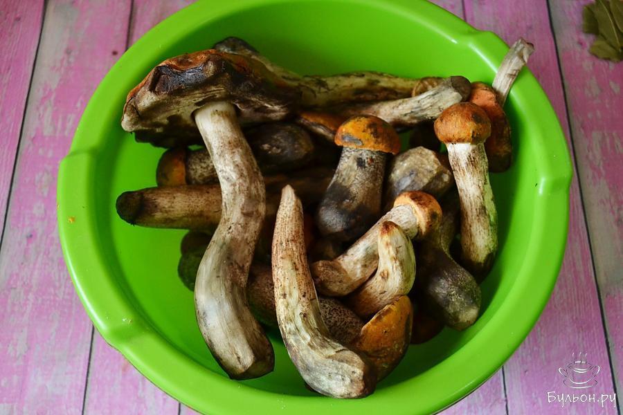 1. Я сегодня мариную подосиновики, потому что в лес я не ходила, а на рынке купила именно эти замечательные грибочки. Перед маринованием подосиновики нужно почистить, отбраковать червивые грибочки.