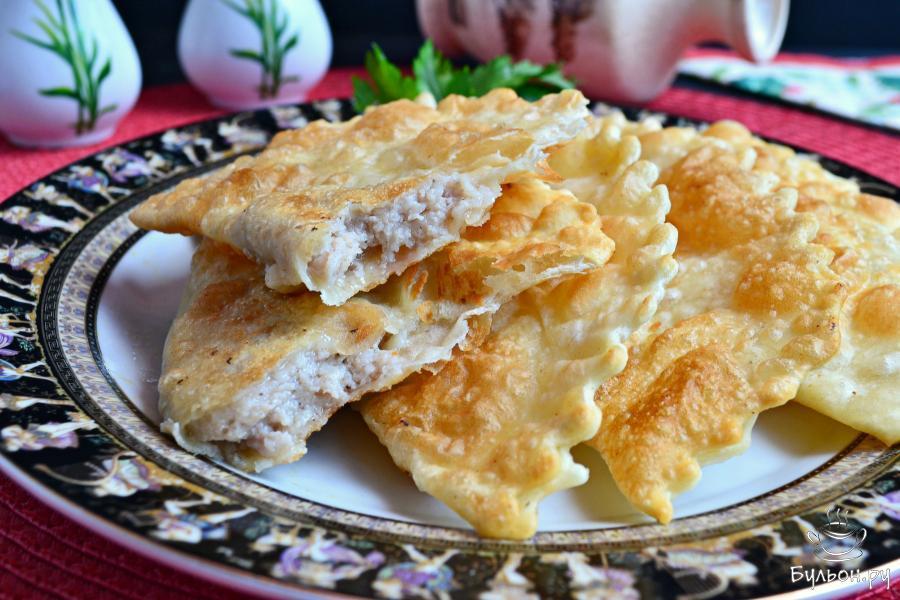 14. Жарить подготовленные чебуреки или во фритюре, или в достаточном количестве рафинированного масла до румяности. Жарятся они быстро.