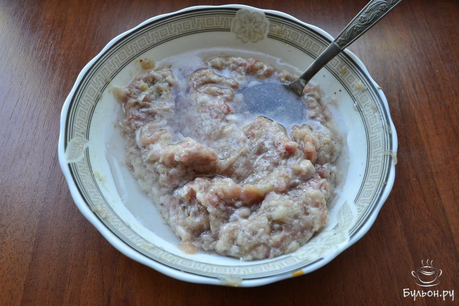 10. 100-150 мл оставшейся воды охладить в морозильнике до ледяной. Эту воду влить в фарш, хорошо перемешать.