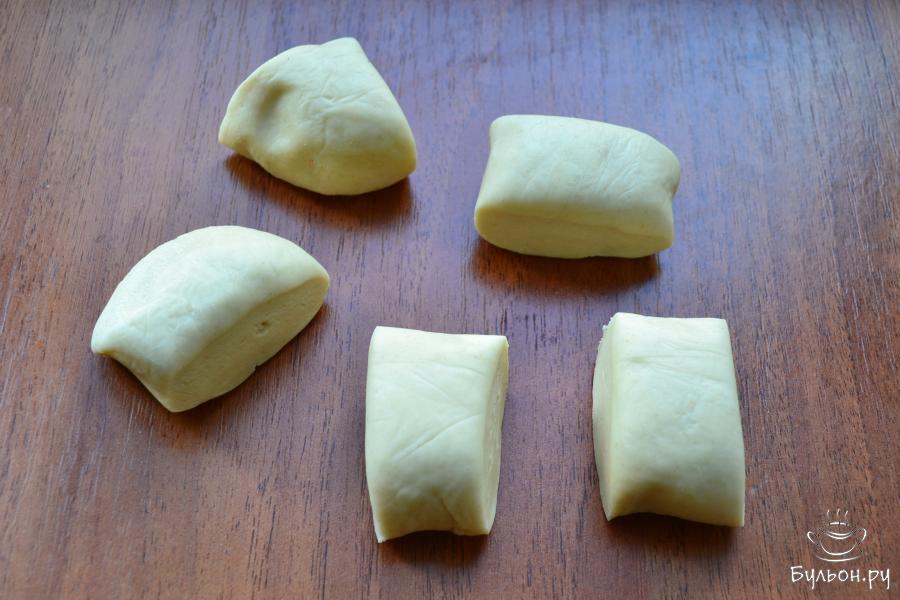 4. Тесто станет мягким и эластичным, совершенно не липнущим, его нужно чуть вымесить, подсыпая муки.