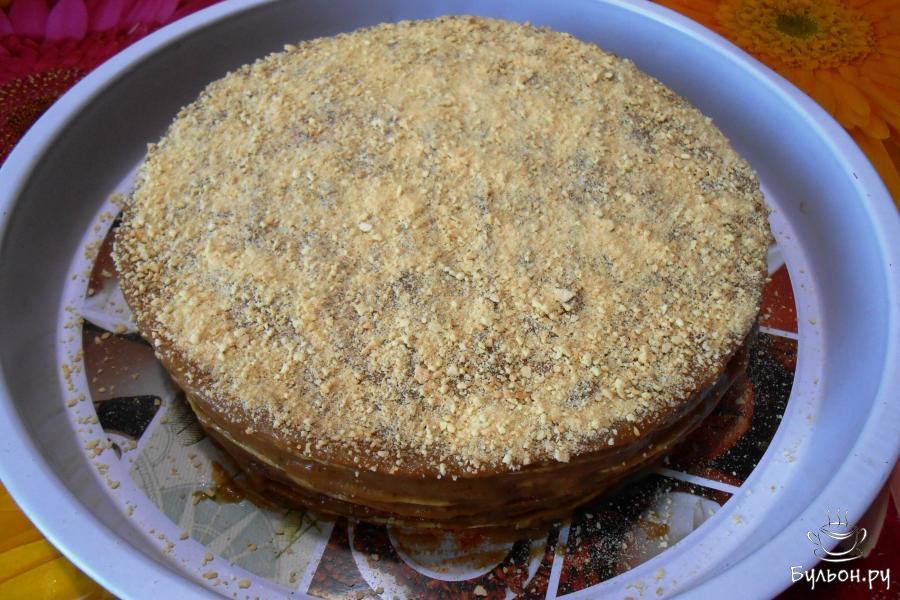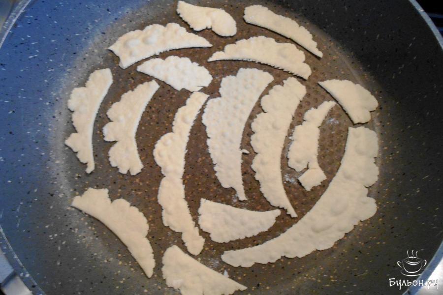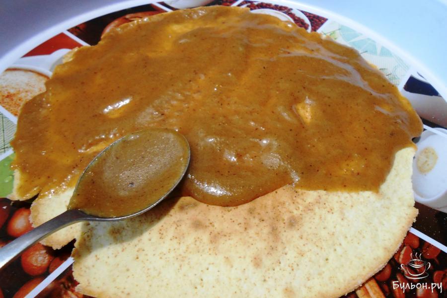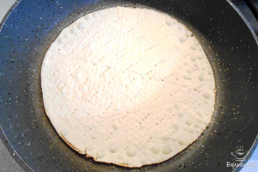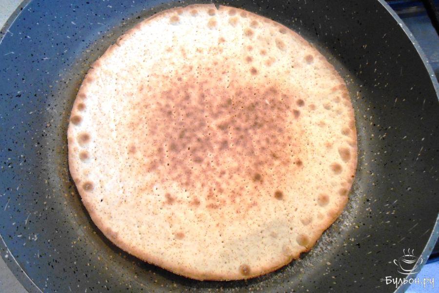 8. Готовим по 1 минуте с каждой стороны до румяности. Готовые коржи складываем друг на друга и отставляем.