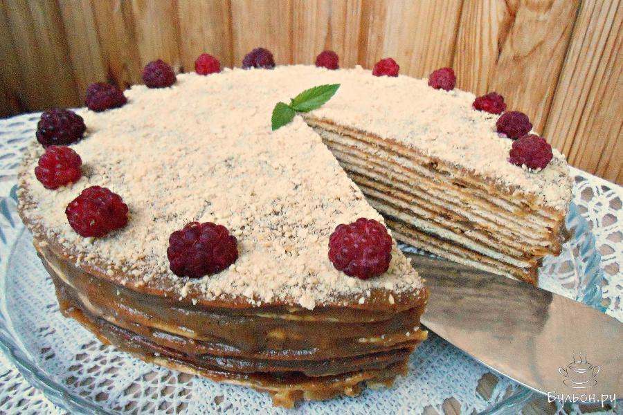 Коржевой торт с ароматным заварным кремом не оставит никого равнодушным. Торт доставит Вам удовольствие в легкости приготовления на обычной сковородке на любой плите. Готовить очень просто при соблюдении каждого шага приготовления. Покрываем уже готовые коржи исключительно горячим кремом для того, чтобы коржи хорошо и быстро пропитались. Холодным кремом именно эти коржи будут пропитываться очень долго и торт может получится сухим. Этот торт не требует длительной пропитки, уже через пару часов можно подавать к столу. Украшать можно чем угодно, данный торт я украшала свежей малиной и мятой.