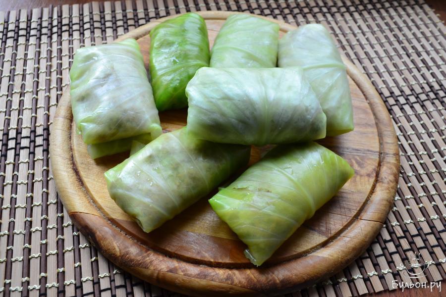 12. Далее, горячую воду чуть посолить и залить ею голубцы. Тушить диетические голубцы не менее 35-40 минут. Подать блюдо вместе с соусом, в котором они тушились и небольшим количеством 10-процентной сметаны, в теплом виде, горячее и холодное при диете 5 запрещено. Приятного аппетита.