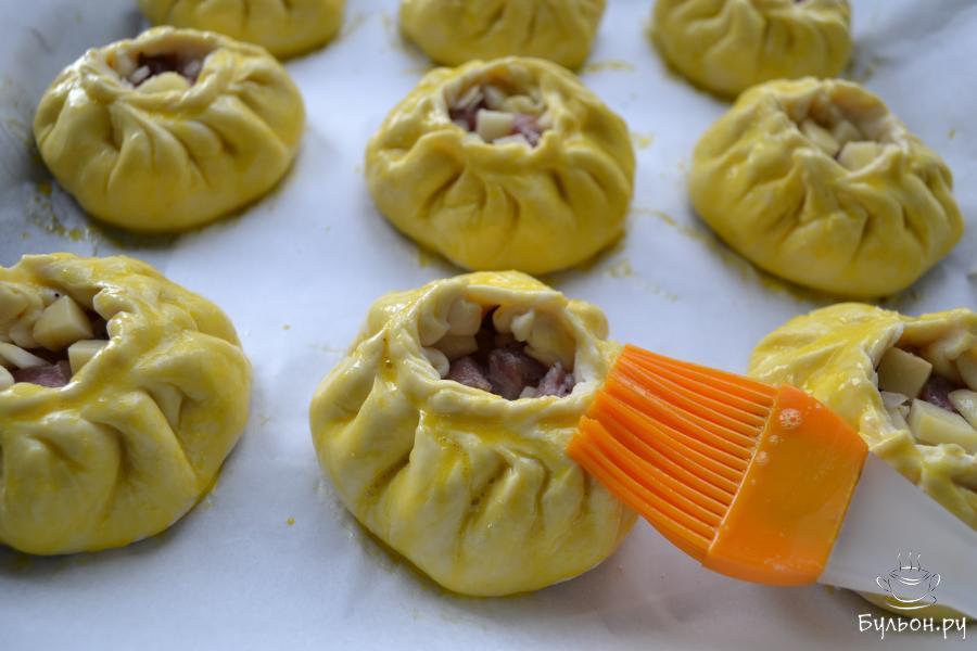 14. Яйцо хорошенько взбить и смазать им все вак бэлиш. Поместить противень в нагретую до 180 гр духовку на 35 мин.