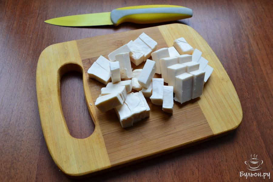 5. Когда картофель станет уже развариваться, добавить к нему содержимое сковороды и порезанный сыр. Кипятить далее суп, помешивая, пока не расплавится весь сыр.