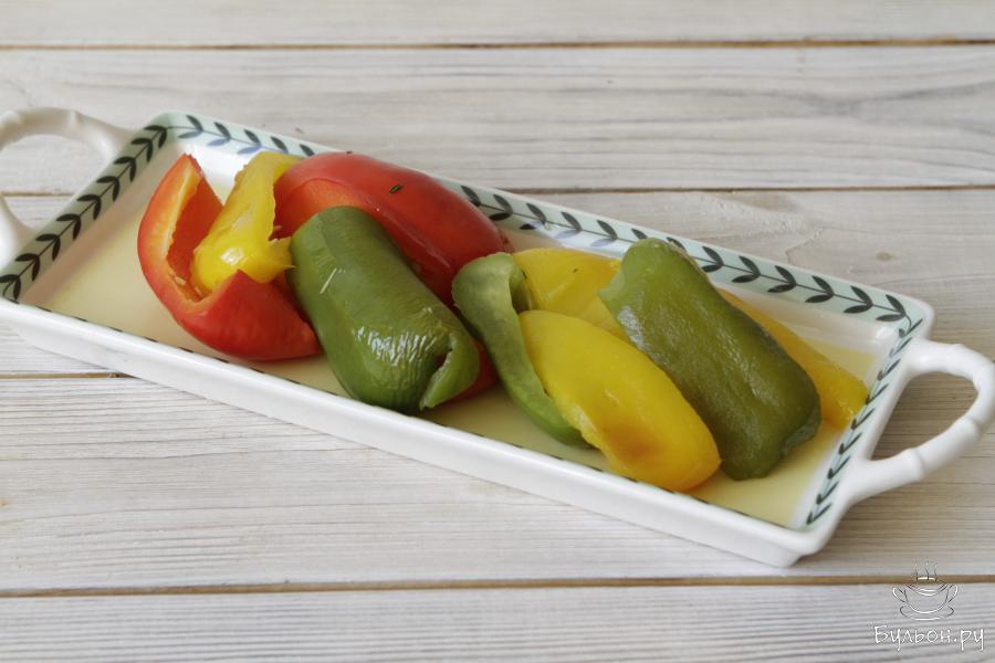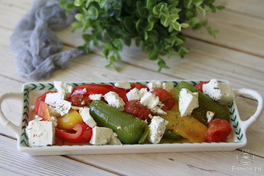 Сегодня вашему вниманию хочу предложить приготовить вместе со мной невероятно вкусную закуску из печеных овощей. Блюдо очень простое в приготовлении, вкусное и невероятно красивое. Овощи (на ваше смотрение) запекаются в духовке, заправляют их оливковым маслом с травами и обязательно добавляют брынзу. В моей вариации я использовала цветной болгарский перец. По желанию один из перцев можно заменить баклажаном. Закуска получается очень легкой, а подавать ее лучше всего в теплом виде. Брынзу выбирайте в меру соленой. Свежий чеснок можно заменить на сушеный.