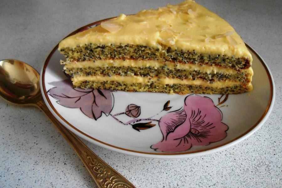 Воздушный маковый бисквит с кремом патисьер и это великолепие называется Царицей Эстер в честь главной виновницы торжества. Этот шикарный торт представляет из себя очень легкий бисквит с маком, практически без добавления муки, прослоенный кремом Патисьер - заварным кремом на желтках с добавлением взбитых сливок с тонкими лимонными нотками. Нежнейший торт легок в приготовлении. При украшении можно включить фантазию и добавить не только миндальные лепестки, но и мак, и белый шоколад, и мармелад. Радуйте своих близких не только по праздникам.