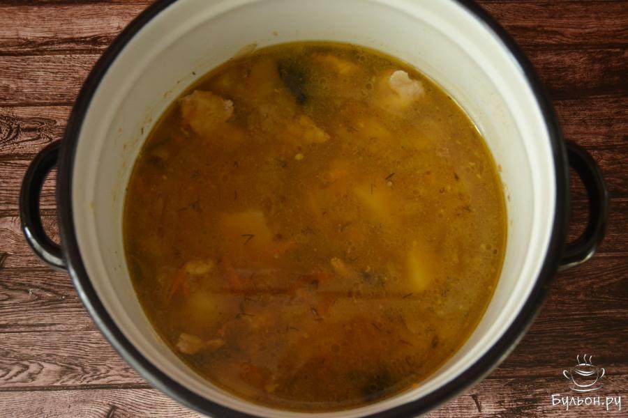 6. Сложим картошку в кастрюлю к мясу и добавим воды, чтобы картошка была покрыта водой. После этого содержимое посолим и поставим вариться. Тушим от момента закипания при закрытой крышке около часа (может немного больше, если мясо жесткое).