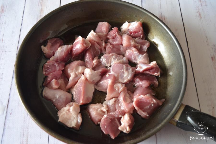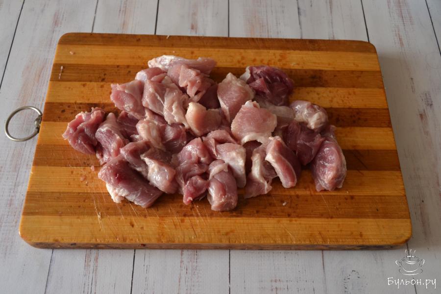 1. Я предпочитаю свинину нарезать не крупными кусочками. Но это дело привычки: можно нарезать и крупнее.