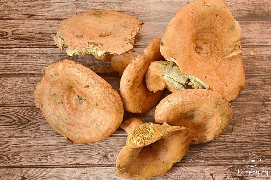 1. Для начала, как можно раньше после сбора грибов, рыжики нам нужно перебрать - удалить некачественные грибы, срезать червивые части.