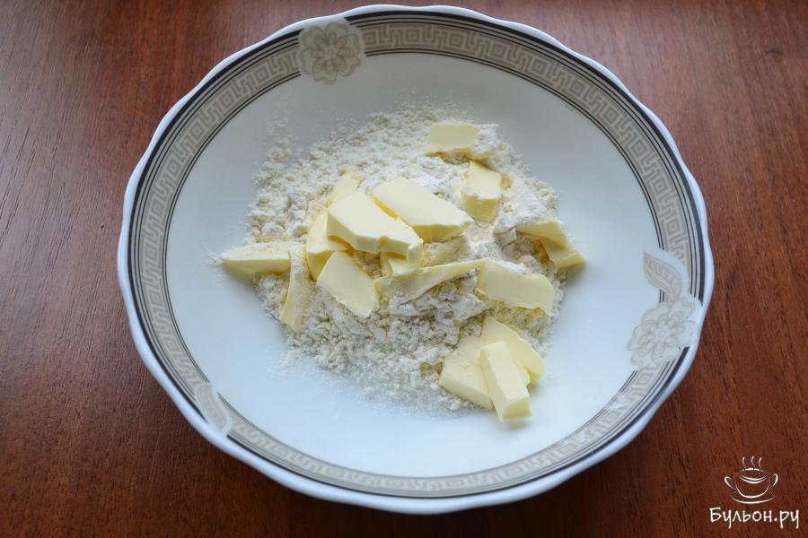 6. Приготовить штрейзель: в 40 гр муки порезать 25 гр холодного масла сливочного и добавить 40 гр сахара.