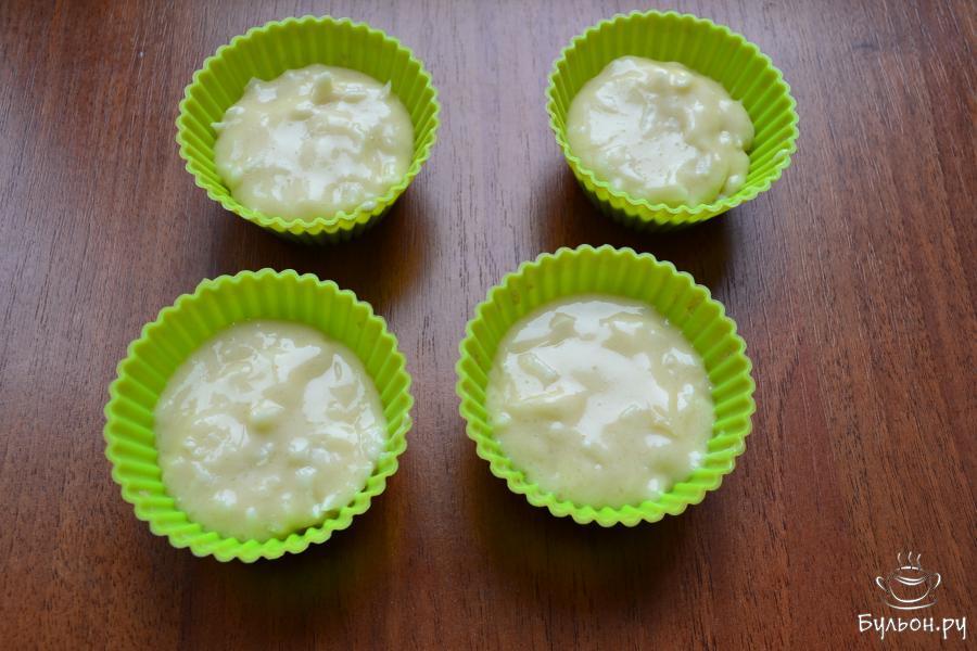 5. Все перемешать и разложить тесто по силиконовым формочкам для кексов на половину объема или чуть больше.