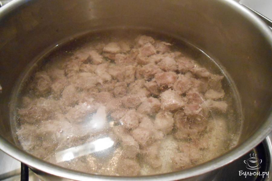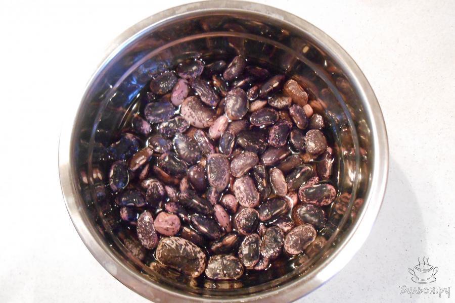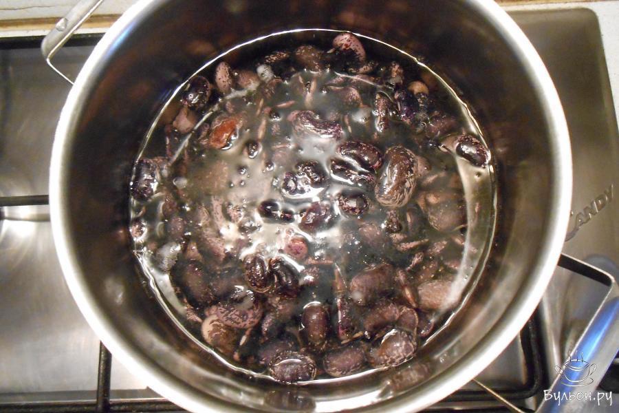 3. Слить воду с фасоли и положить в небольшую кастрюлю. Добавить 0,5 л воды и довести до кипения. Варить на медленном огне при закрытой крышке 1 час.
