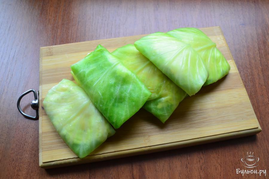 5. Свернуть капустные листья конвертиками, придавливая рукой, чтобы конвертики стали, как можно более плоскими.