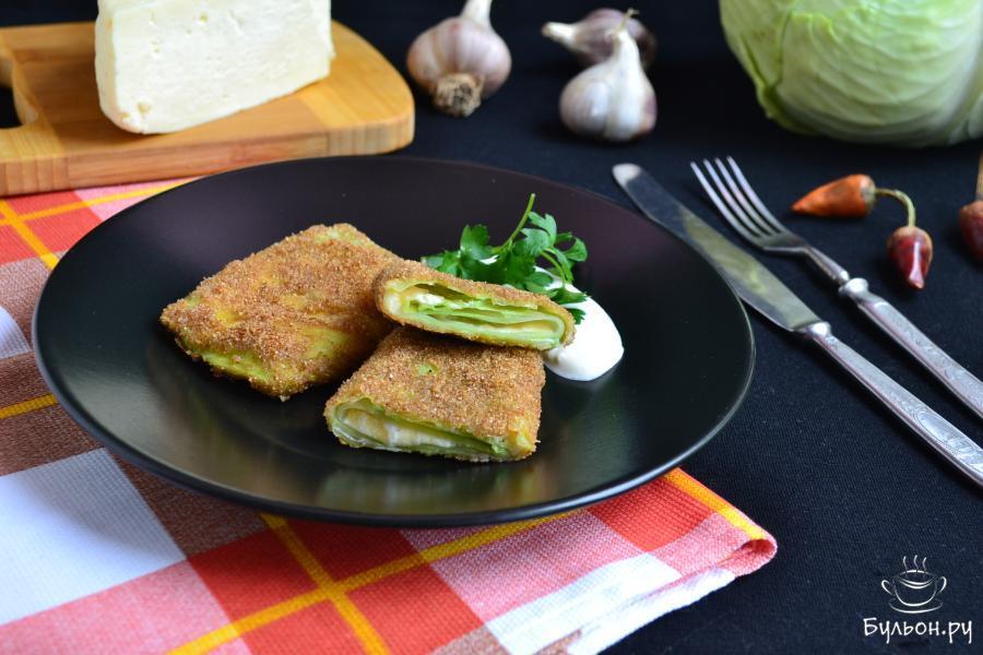 10. Жарить капустные шницели с начинкой из сыра на масле растительном до румяности. Жарятся они не долго - минуты 2-3 с каждой стороны.