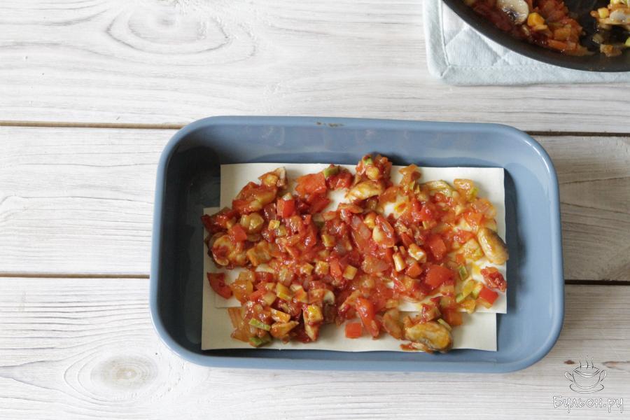 10. Духовку предварительно разогреть. Запекать лазанью с овощной начинкой 30 минут при 180 градусах.