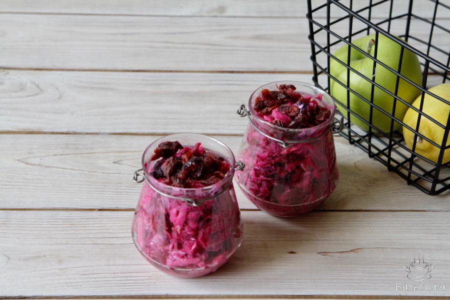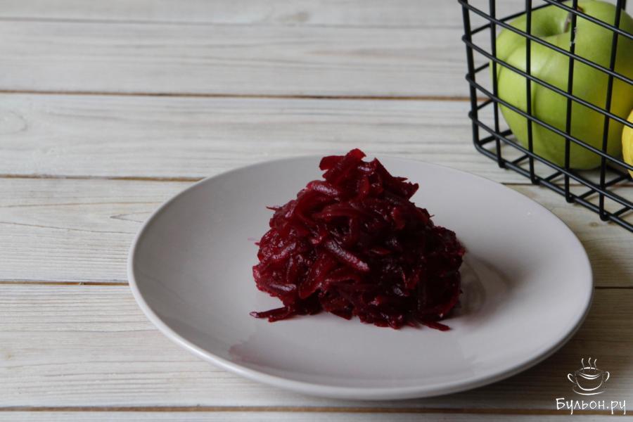 1. Удобным для вас способом отварить свеклу: на плите, в мультиварке или же запечь. Свеклу остудить, почистить и натереть на терке среднего размера.
