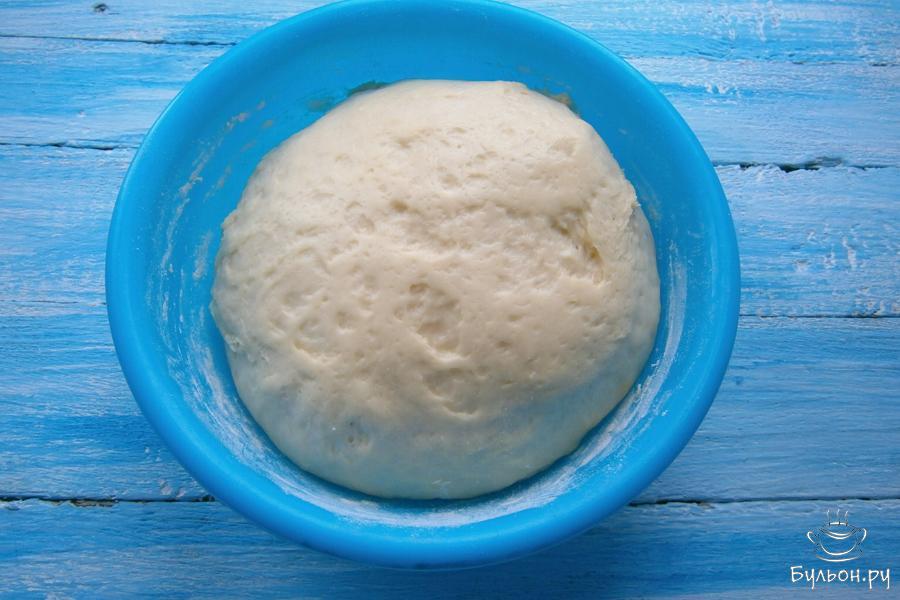 5. Тесто накрыть целлофаном или пищевой пленкой, оставить в тепле на 60 мин. Тесто увеличится почти в два раза.