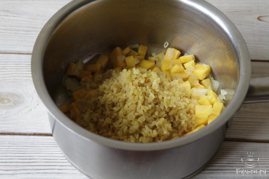 Булгур с тыквой очень вкусное и полезное блюдо. Блюдо с небольшим содержанием калорий. Булгур с тыквой вполне можно приготовить в пост и рекомендую для вегетарианцев. Но в этом случае тогда овощи нужно обжаривать не на сливочном, а растительном масле. Блюдо вполне подходит и для детского меню. Тыква придает булгуру слегка сладковатый вкус и пикантность. Подавать булгур с тыквой можно как в теплом, так и холодном виде. Перед подачей можно слегка присыпать любимыми сухими травами или украсить веточкой свежей зелени.