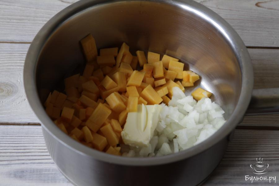 6. Влить воду или овощной бульон. Довести до кипения. Посолить, поперчить по вкусу. Как только вода выкипит, убавить огонь и закрыть кастрюлю крышкой. Томить на медленном огне 5-7 минут.