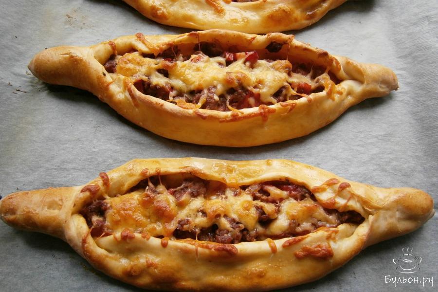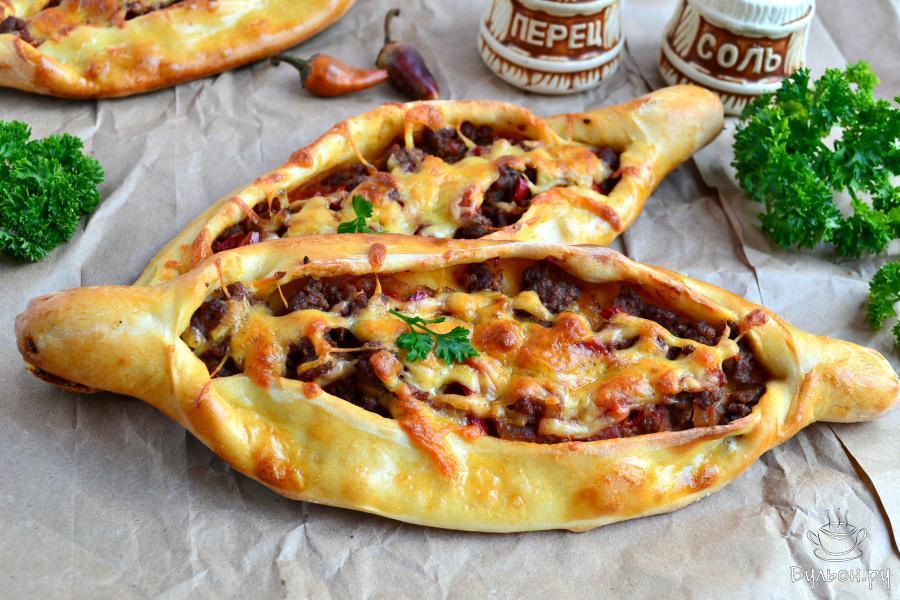 Пиде - лепешка, принадлежащая к турецкой кухне, которая формируется в виде длинной лодочки с начинкой из говяжьего фарша. Готовится лепешка в духовке и является чем-то средним между пирожком и пиццей, такой своеобразный турецкий фаст-фуд. Лепешка с фаршем получается очень вкусной: тесто немного хрустящее, а начинка ароматная и очень сочная. Кстати, вместо говяжьего фарша можно, конечно же, использовать любой другой фарш или мелко порезанное мясо, грибы или колбасу - это уже, что есть в наличии. Блюдо все-равно будет невероятно вкусным, попробуйте обязательно.